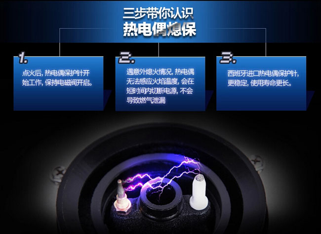 ◇ 带童锁延时点火开关,双线热电偶熄保;